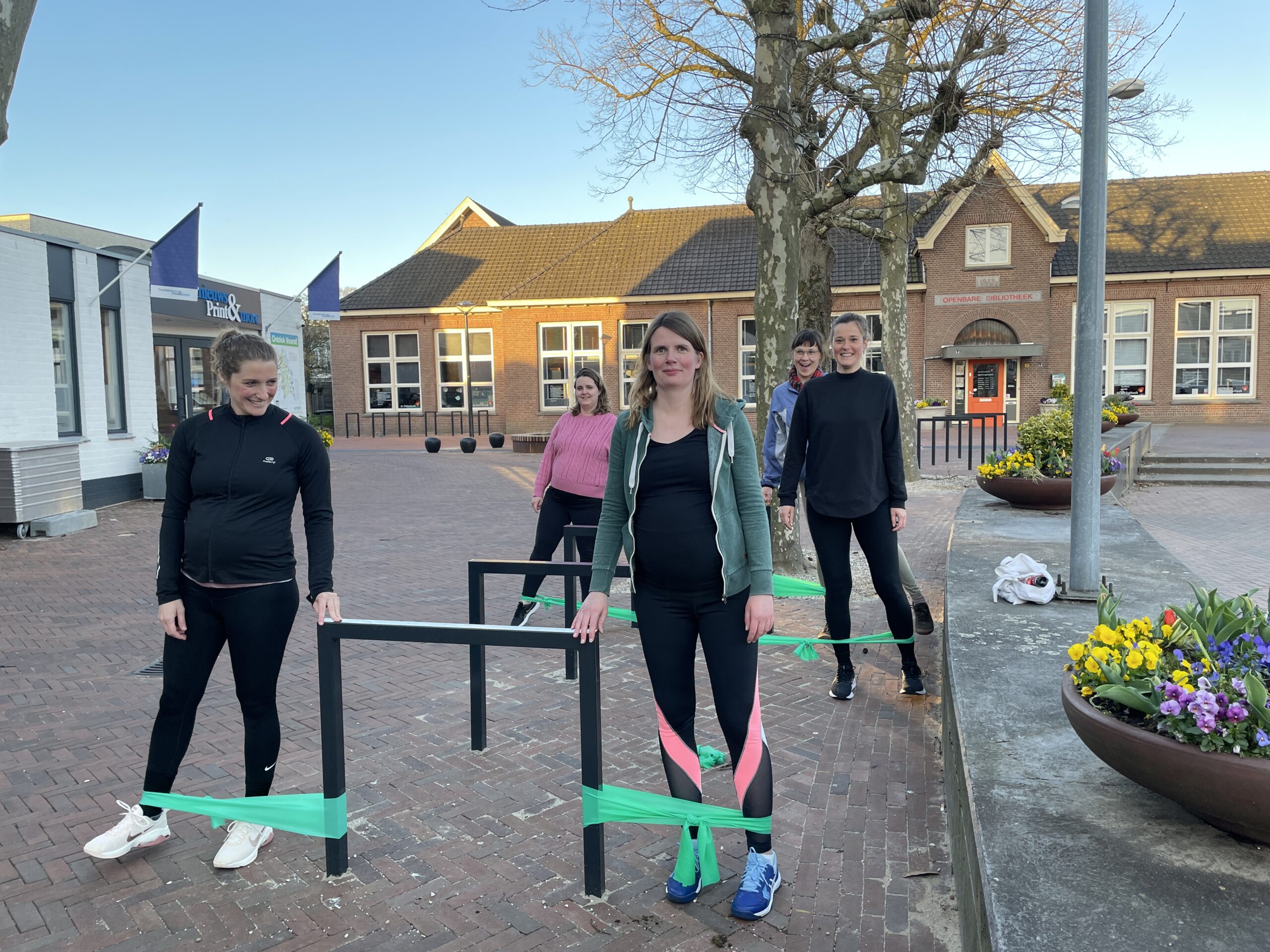 • Bij goed weer sporten we buiten, met een mix van oefeningen met een dynaband en circuittraining.